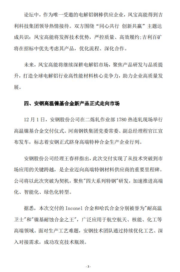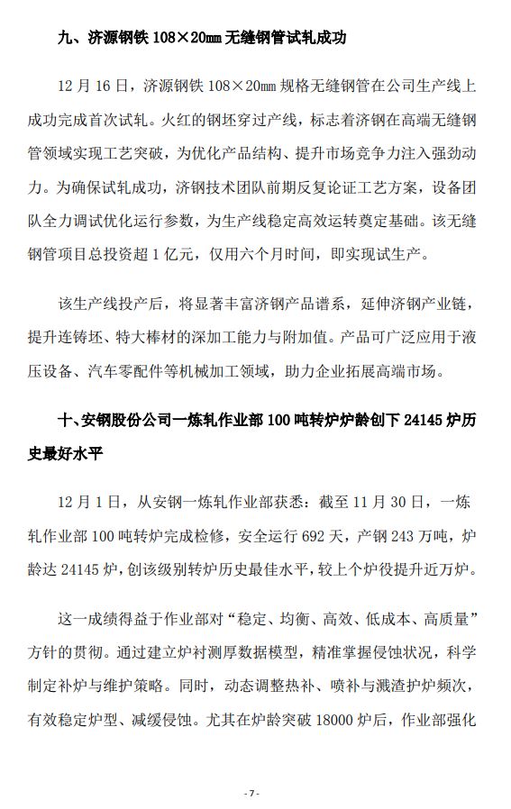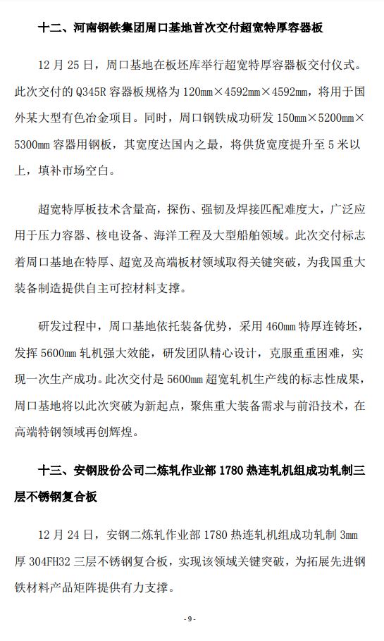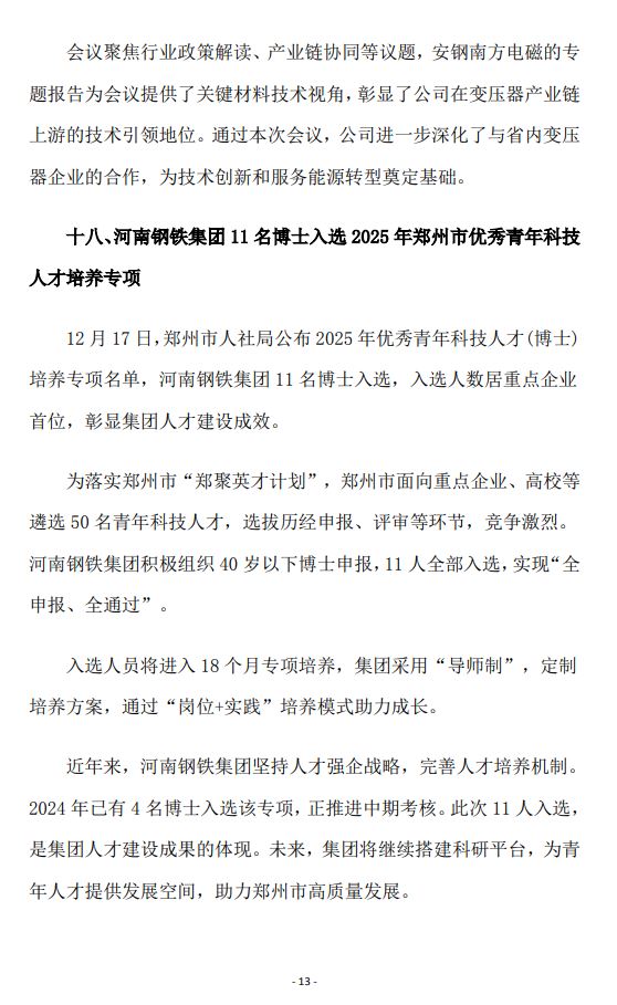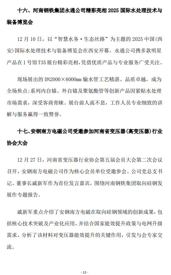 2025年12月河南省钢铁行业重要信息速览