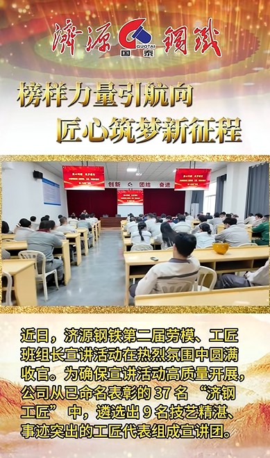 奋斗的号角已经吹响,实干的脚步永不停歇。愿全体济钢人以工匠榜样为镜,把学习收获转化为干事创业的实际行动,将匠心融入每一道工序、每一个产品,在平凡岗位上创造不凡价值,为济源钢铁高质量发展注入源源不断的奋进动能!
