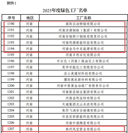 近年来,林州凤宝管业有限公司持续深化绿色制造体系建设,通过引进先进节能设备、优化生产工艺流程、规范固废及危废回收管理等一系列举措,推动生产过程向标准化、智能化与绿色化迈进,有效降低了碳排放与资源消耗。此次获评国家级绿色工厂,是对其绿色制造成果的高度认可,也为行业可持续发展树立了典范,激励更多企业投身绿色制造,共同推动行业的绿色转型。