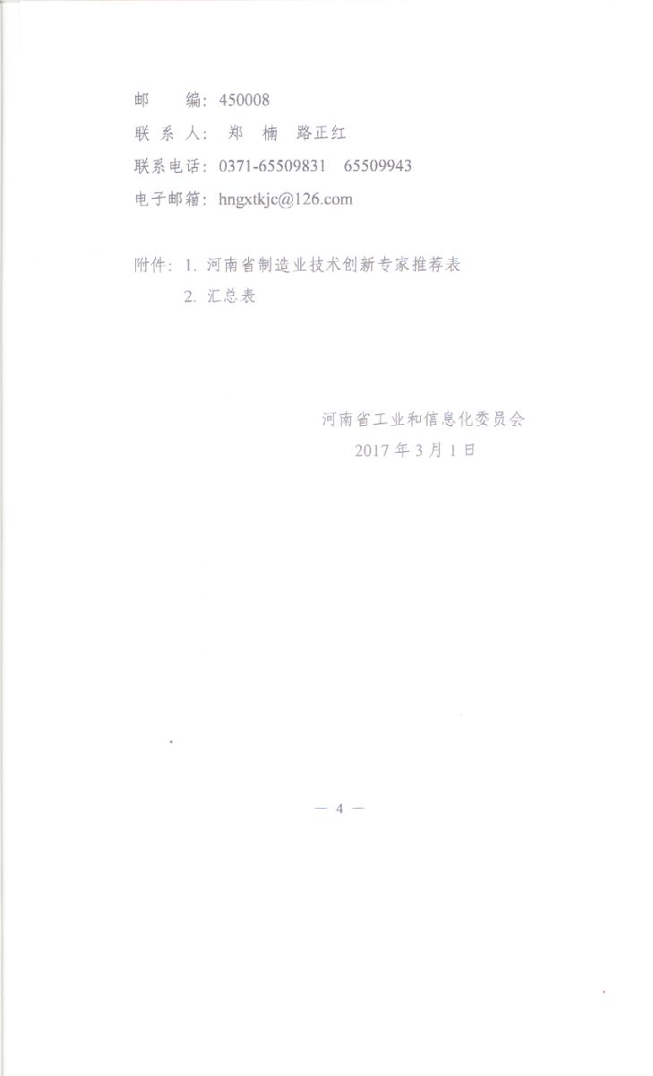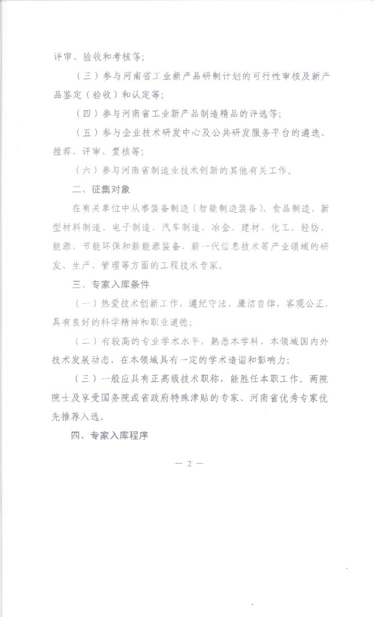 关于转发省工信委《关于征集河南省制造业技术创新专家的通知》的通知