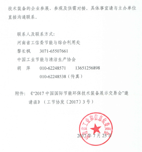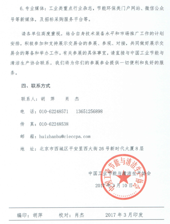 关于请协助做好“2017中国国际节能环保技术装备展示交易会”有关事宜的通知