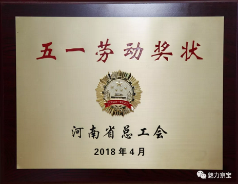 祝贺河南京宝焦化有限公司荣获河南省五一劳动奖状