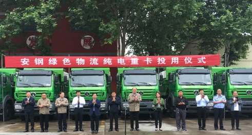 5月21日,安钢绿色物流纯电重卡投用仪式在汽运公司举行,纯电力重型自卸车YX3180EV正式投入运输序列。安钢成为全国第一家改造、使用纯电重卡的钢铁企业,绿色物流从“近零排放”向“零排放”迈出重要一步。集团公司党委书记、董事长李利剑、总经理刘润生、总工程师姚忠卯、股份公司副经理张纪民,安阳市环保局、公安局、殷都区政府相关领导,以及集团公司有关部室和二级单位主要领导出席仪式。