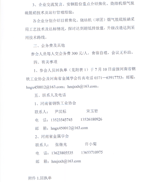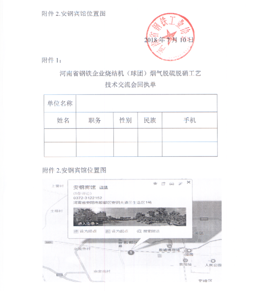 关于调整召开“河南省钢铁企业烧结机(球团)烟气脱硫脱硝工艺技术交流会”时间的通知