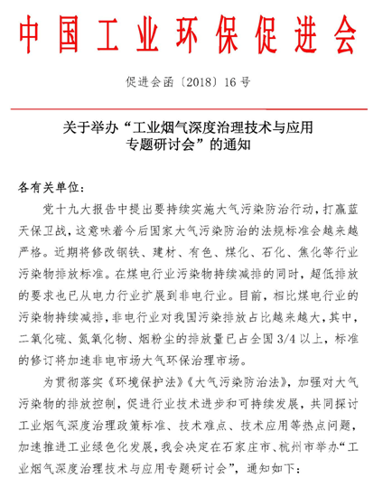 关于举办“工业烟气深度治理技术与应用专题研讨会”的通知
