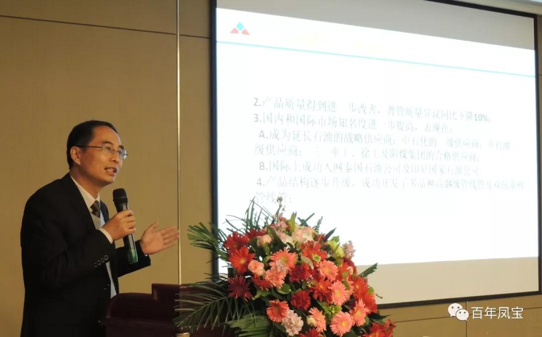 凤宝管业总经理肖永忠致欢迎词,对一年来广大客户和社会各界对凤宝管业建设发展的关心和支持表示衷心感谢。他说,2018年,凤宝管业完成销售收入45亿元,实现利税3.2亿元,整体产销平衡。在新的一年里,凤宝管业以全面贯彻落实高质量发展全面提升为指引,全力推进各项重点工作,进一步创造、壮大企业竞争优势,确保企业在新形势下继续保持高效稳健发展。