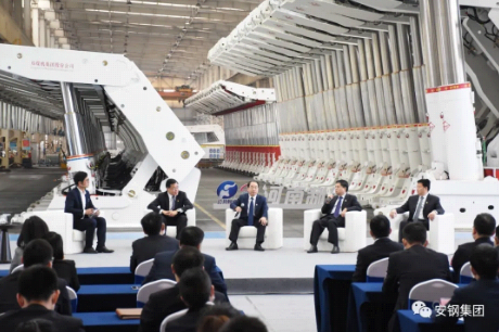 谈到发展问题时,李利剑分享了安钢绿色发展、高质量发展经验。他说,安钢积极践行习近平生态文明思想,既要企业发展,更要碧水蓝天,早在2014年,企业最困难的时期,毅然投资8亿元实施环境治理,全部达到当时国家环保要求。2017年以来,又斥资50多亿元,按照国家超低排放要求,采用世界最先进的技术、最成熟的工艺、最高的装备配置,实施环境深度治理,大气污染治理达到世界一流、国内领先水平。特别是焦化脱硫脱硝技术,被评定为“国际领先水平”,成为钢铁行业绿色发展新标杆。同时,斥资10多亿元,开展“公园式、森林式”园林化工厂建设,2019年底成功挂牌“国家3A级旅游景区”。在高质量发展方面,安钢明确产品中高端市场定位,坚持“双高”引领,以高端用户促进高端产品,加大人才培养和产品研发力度,与中船、北奔、陕汽等国内龙头企业进行合作,高端高效产品比例从2014年的32%大幅增加到目前的70%以上。截至目前,30余项产品荣获“金杯优质产品”,3项产品荣获冶金行业“奥斯卡”最高荣誉“金杯特优产品”。
