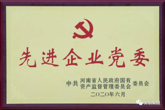 安钢党委荣获全省国资国企系统“先进企业党委”荣誉称号