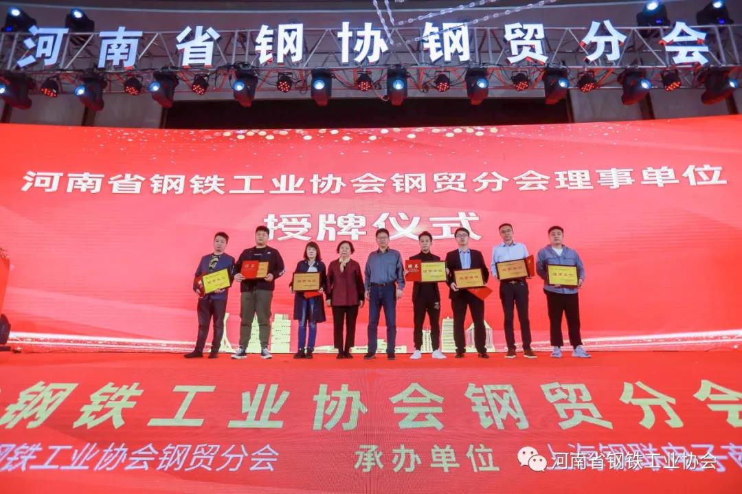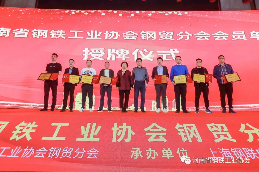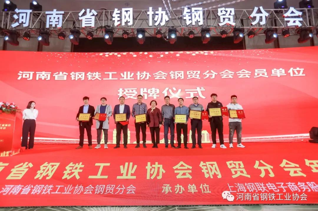 随后进入会议的授牌环节,钢贸分会成立以来,工作不断取得进展,影响日益扩大,我们的队伍也在逐步壮大,本次共有34家新会员单位加入我们的大家庭,真正实现了一条闭合钢铁产业链。河南省钢铁工业协会钢贸分会授牌仪式,副会长单位9家,理事单位8家,会员单位17家。其中,河南省钢铁工业协会钢贸分会副会长单位成员名单分别是:河南钢娃电子商务有限公司、郑州亿仁科贸有限公司、河南鑫山贸易集团有限公司、郑州宏之舟钢铁有限公司、上海钢联电子商务股份有限公司、河南中原现代物流有限公司、中物流河南有限公司、河南唐尧供应链管理有限公司、河南大万供应链管理有限公司。