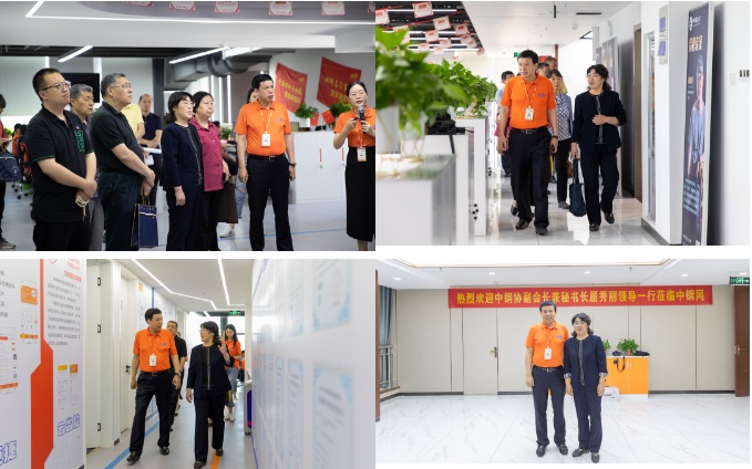组图为中国钢铁工业协会副会长兼秘书长屈秀丽一行参观中钢网