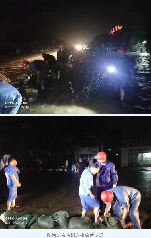 7月17日,凤宝特钢召开防汛工作紧急会议,针对防汛情况做出指示:一是防汛预案保证随时有效启动,保证人员到位;二是供应部门确保沙袋等防汛物资供应;三是基建部要全力保障屋面、地沟和路面排水畅通;四是针对重点部位重点防控。得益于前期的得力防控,此次受损情况较轻。厂区受暴雨的影响较小,目前生产经营一切正常。