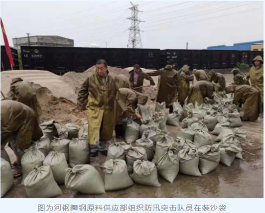 入汛以来,河钢集团舞钢公司提前准备,确保物资充足和各项应对措施到位,对防汛重点地段、重点工程和重点部位逐一排查、加强监控,对用电设备、用电线路、避雷设施等进行全面细致检查,防止厂区、车间、库区被淹,防止雨天触电、雷击等事故发生,同时组织防汛抢险队伍的建立和演练,确保安全度汛。