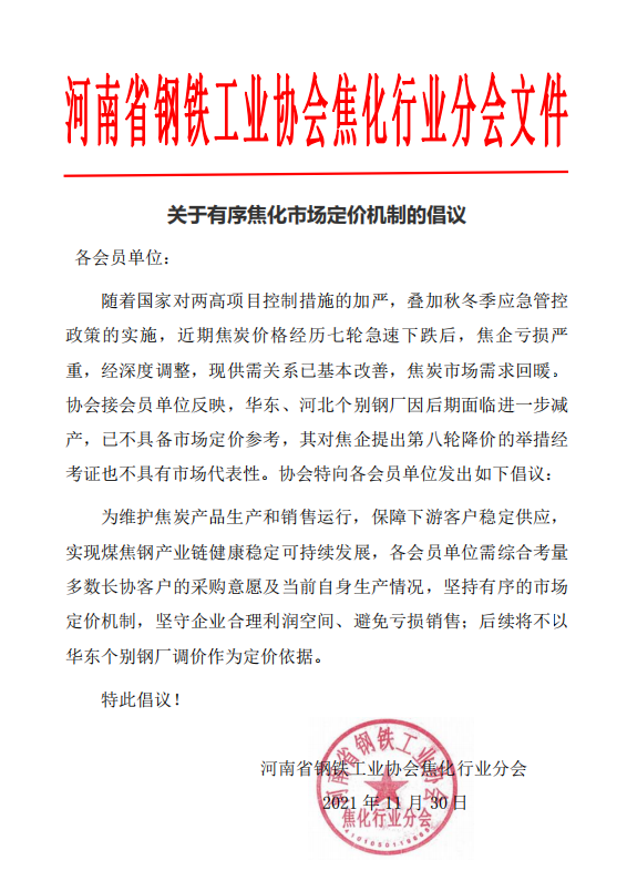 关于有序焦化市场定价机制的倡议
