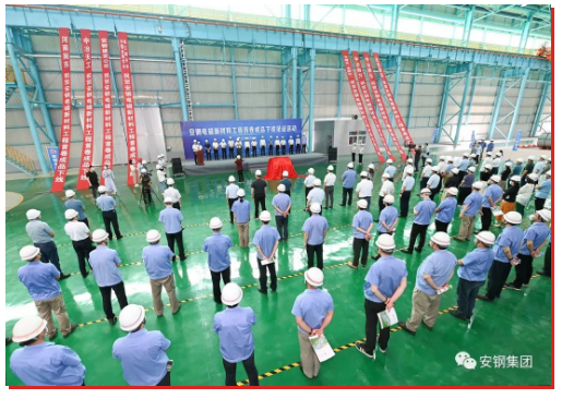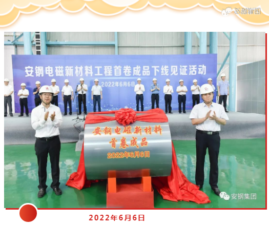 安钢冷轧公司电磁新材料车间内气氛热烈,随着集团公司党委书记、董事长李利剑和安阳市委副书记、市长高永共同为安钢电磁新材料工程首卷成品揭彩,标志着安钢电磁新材料项目一期工程建成投产,安钢绿色低碳转型发展掀开了崭新篇章。
