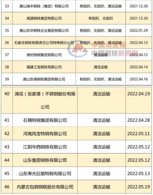 自2020年8月起,中国钢铁工业协会开展了钢铁企业超低排放改造和评估监测进展情况公示工作,截至目前,已有46家企业在钢协网站进行公示。