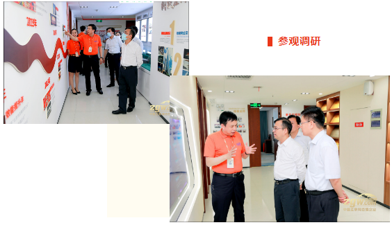 另讯:启动仪式结束后,河南省商务厅副厅长王军、河南省工商联副主席赵纯武等一行在董事长姚红超的陪同下,对中钢网进行了调研指导。姚红超带领王军一行参观了中钢网办公环境,并就展示墙上的企业文化和图片,对公司的企业架构、经营业态、企业文化等,做了详细的介绍。