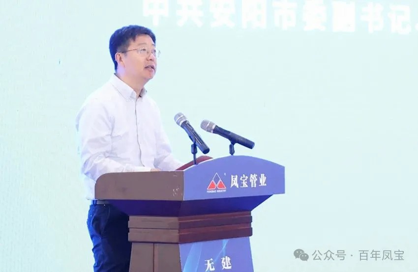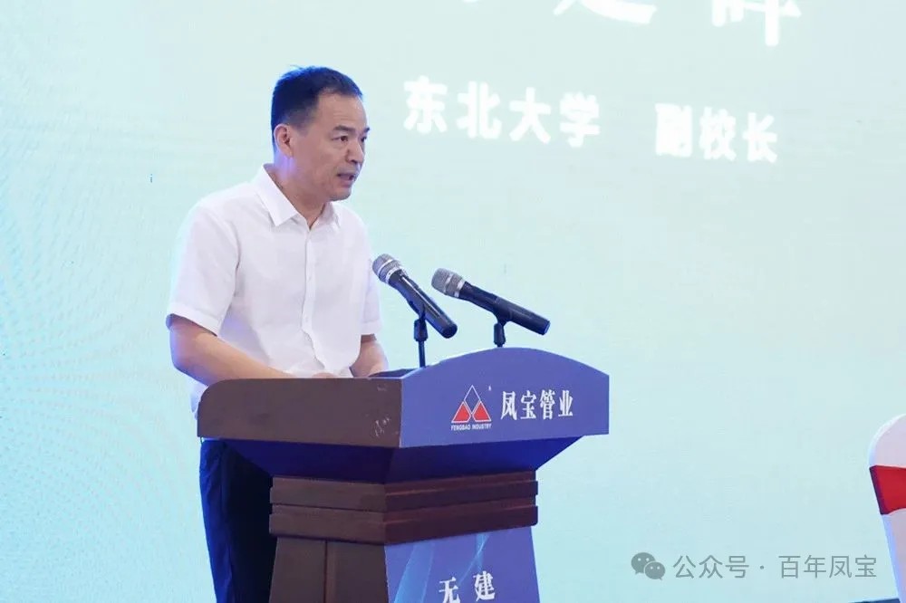 凤宝管业与北京科技大学、东北大学进行科技创新合作暨共建博士后工作站,是凤宝结合企业在传统能源和新能源用管、高端装备、汽车用管等关键领域的战略布局,围绕“钢铁新材料、钢管特种应用”战略方向,打造原创技术策源地和自主创新高地,推进“钢铁冶炼向材料创新”转变,成为具有全球竞争力的特种管材制造及应用服务商重大战略举措。7月8日,北京科技大学、东北大学、凤宝管业科技创新合作暨共建博士后科研工作站签约仪式在林州市举行。中国工程院院士、北京科技大学教授谢建新出席并致辞,安阳市委书记袁家健、北京科技大学副书记孙景宏共同为博士后科研工作站揭牌,东北大学校长助理刘延晖,安阳市委副书记、市长高永,副市长王新亭出席签约仪式。林州市委书记孙建铎致欢迎辞,林州市委副书记、市长田元飞主持仪式。