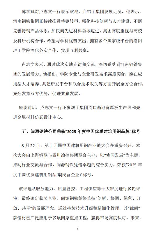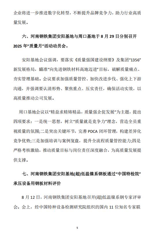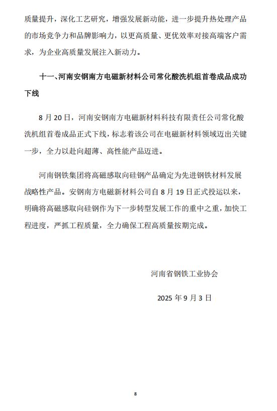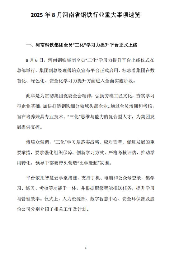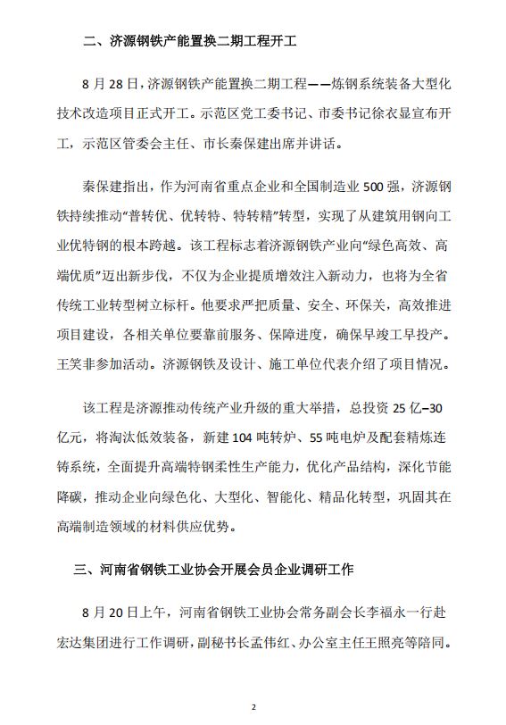 2025年8月河南省钢铁行业重要信息速览