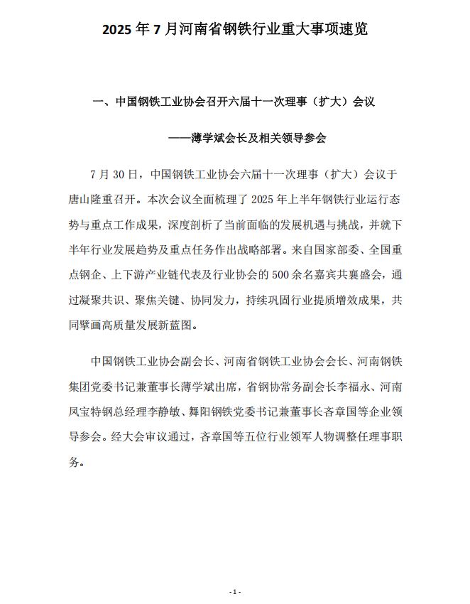 来源:河南省钢铁工业协会 编辑:管理员 2025年08月02日 10:23