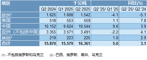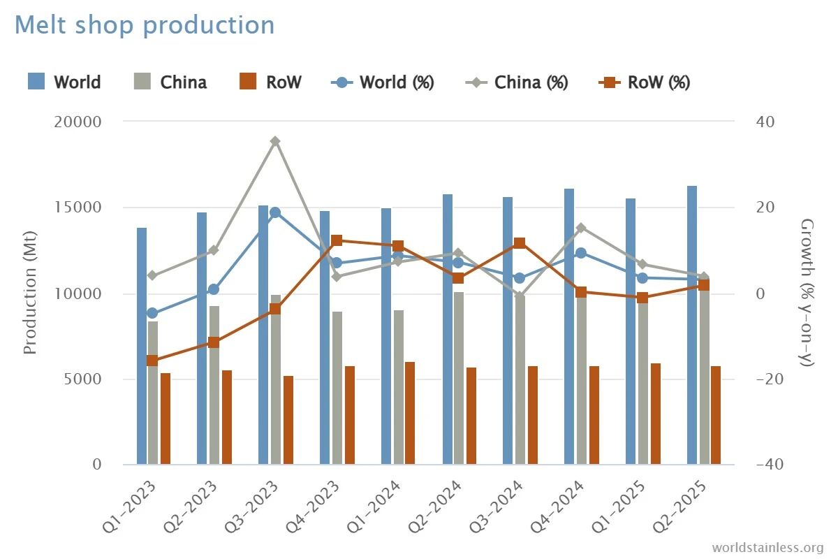 世界不锈钢协会发布的2025年第二季度的数据表明,前六个月的不锈钢粗钢产量为3190万吨。