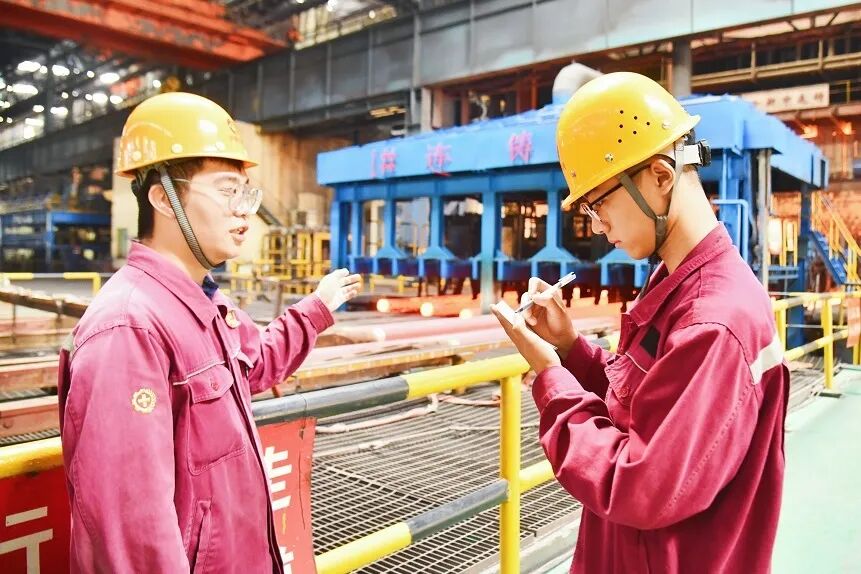 在炼钢厂车间内,年轻的工艺员王航正带着新徒弟杨童林穿梭在转炉与连铸机前,今年刚满25岁的王航入职仅3年时间,凭借着扎实的理论知识和刻苦钻研的品格成长为岗位核心骨干,曾经那个略显稚嫩的腼腆青年已经在飞溅的炉火间淬炼成身经百战的“老师傅”。从转炉装入制度的原料配比到脱氧合金的精确计算,从连铸过热度控制到到结晶器装配标准,王航几乎把每一个操作细节都拆解成可量化的步骤,倾囊相授给杨童林。