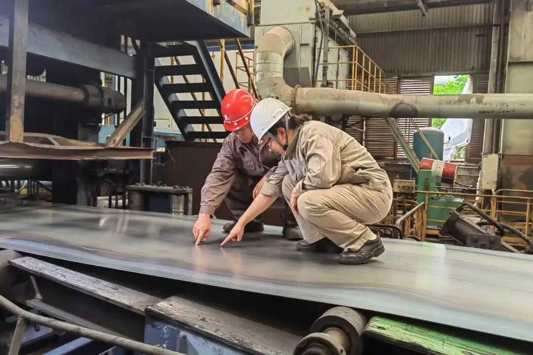近日,二炼轧作业部热连轧作业区以“质量月”活动为契机,持续加大产品外观质量检查力度。近日,该作业区对一批用于电机、发电机的先进钢铁材料进行专项检查,创新采用“人工目视+智能仪器”双检机制,重点检查钢板表面的氧化铁皮残留、微观划痕等缺陷,实现“全维度、无死角”质量管控。(孙义涛 谭卫红)