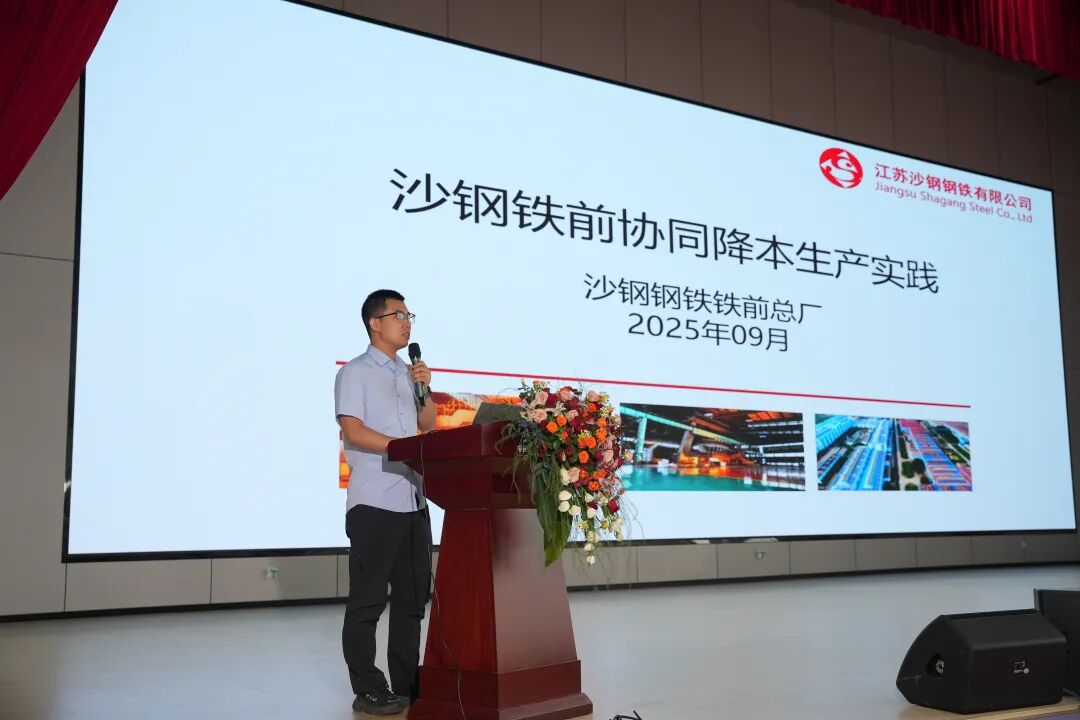 沙钢钢铁铁前总厂工艺技术科科长助理韩旭作《沙钢铁前协同降本生产实践》技术报告,围绕铁前降本与低碳目标,通过优化高炉操作保障炉况稳定、分级管控原料配矿、调整燃料结构、推进“四降一提”能源攻关、智能化平台提升管控效率等方面开展的工作。