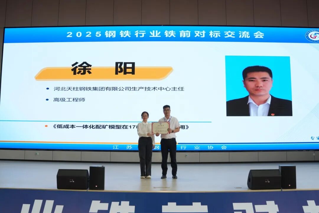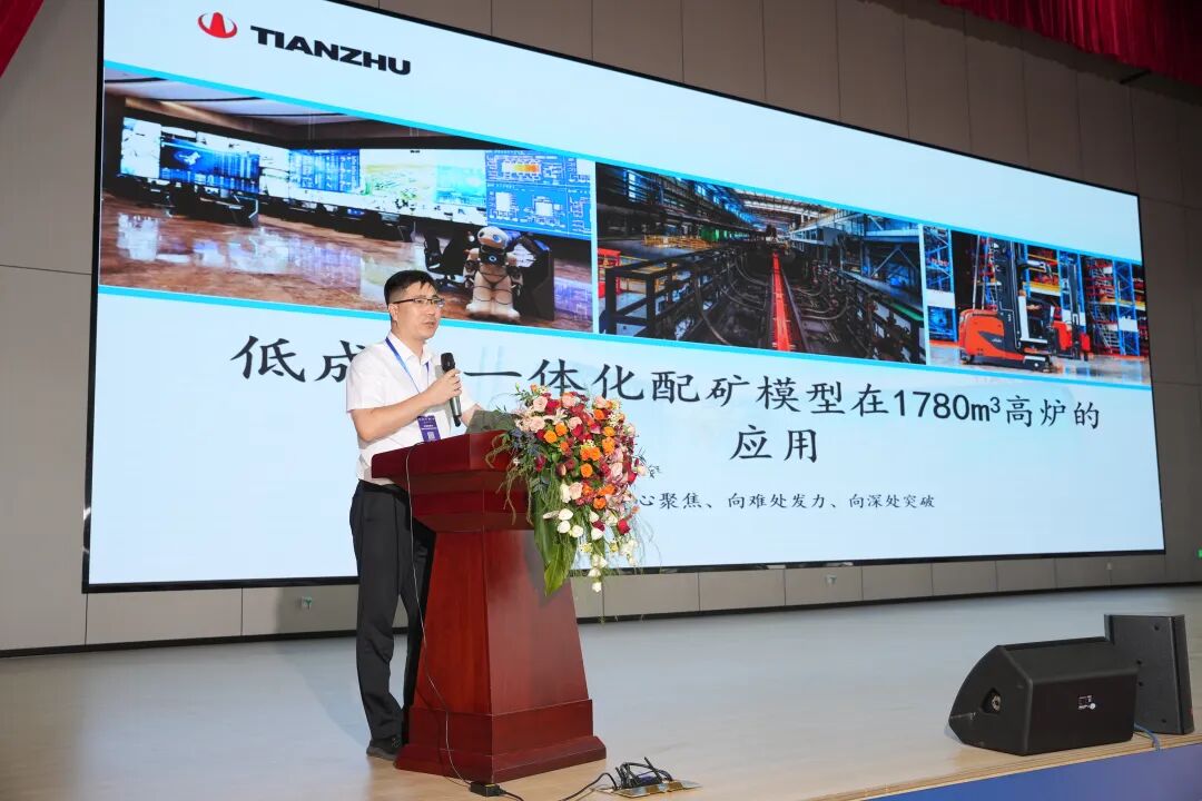 河北天柱钢铁技术中心主任徐阳作《低成本一体化配矿模型在1780m³高炉的应用》技术报告,介绍了低成本一体化配矿模型及精准化配矿实践。