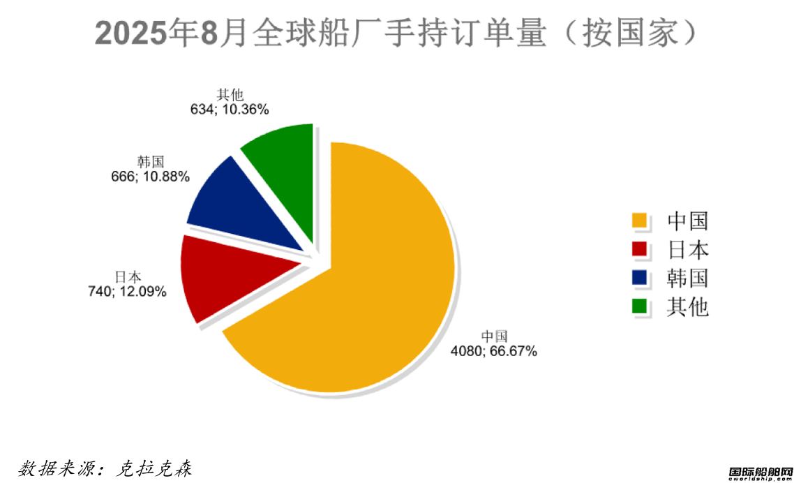 全球手持订单6120艘,中国船厂4080艘占全球市场份额66.67%