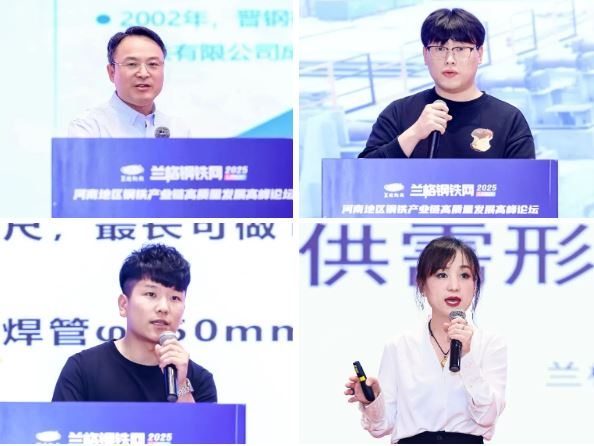 在主题演讲环节,各企业代表先后发表专题报告。山西晋钢智造科技实业有限公司产品研发工程师苗自峰围绕科技创新与企业高质量发展路径展开介绍;山东磐金钢管制造有限公司销售科长夏怡飞阐述了企业以技术创新推动高端钢管制造的发展实践;天津源泰德润钢管制造集团有限公司区域经理史振悦分享了方矩管专业领域20年来的成果与应用经验;兰格钢铁网主编王思雅分享了题为《下半年国内钢铁市场供需及价格分析》的报告。