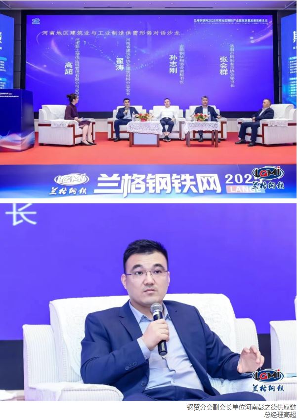 本次论坛还设置了对话环节,邀请河南省建筑业协会建筑材料分会会长翟涛、安阳钢结构协会副秘书长孙志刚、洛阳市钢制家具协会秘书长张会群、河南彭之德供应链管理有限公司总经理高超,就河南地区建筑业与工业制造供需形势展开深入交流,推动产业链上下游协同发展。