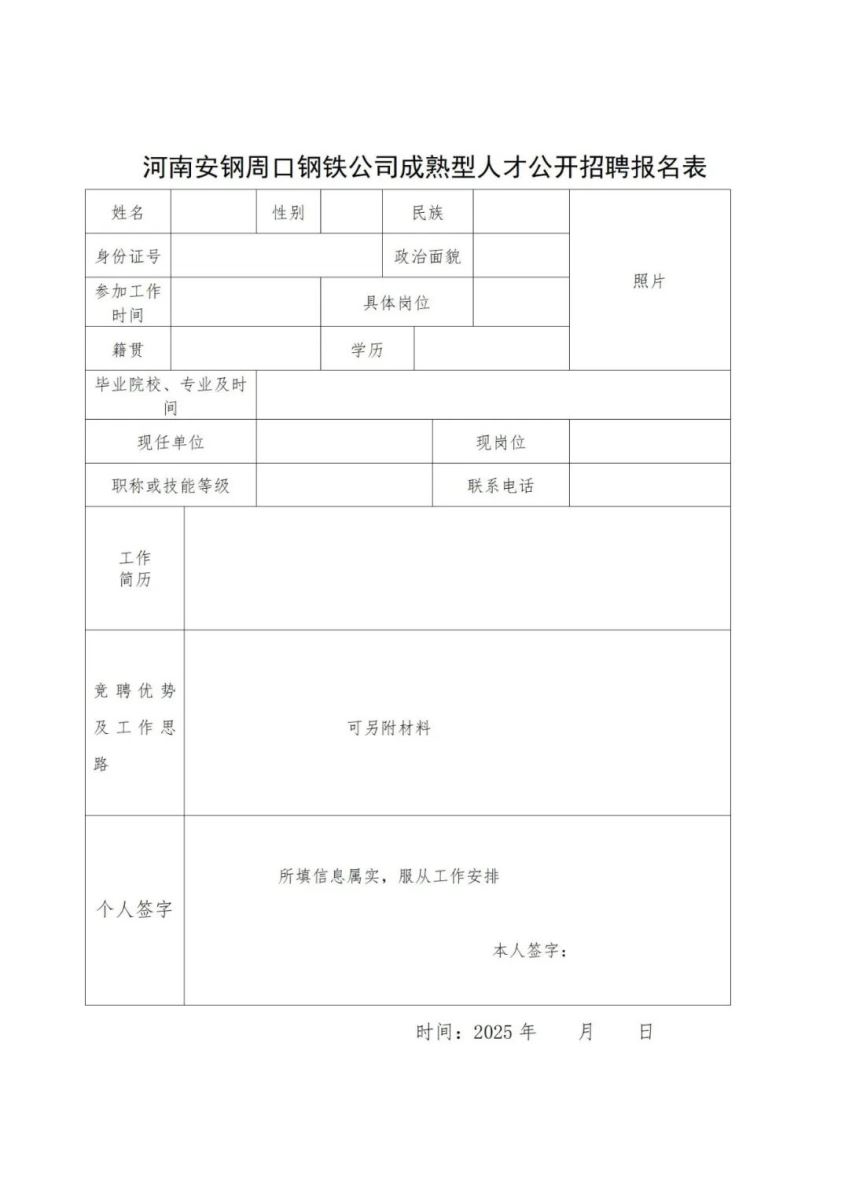 河南安钢周口钢铁有限责任公司 面向社会公开招聘成熟型人才公告