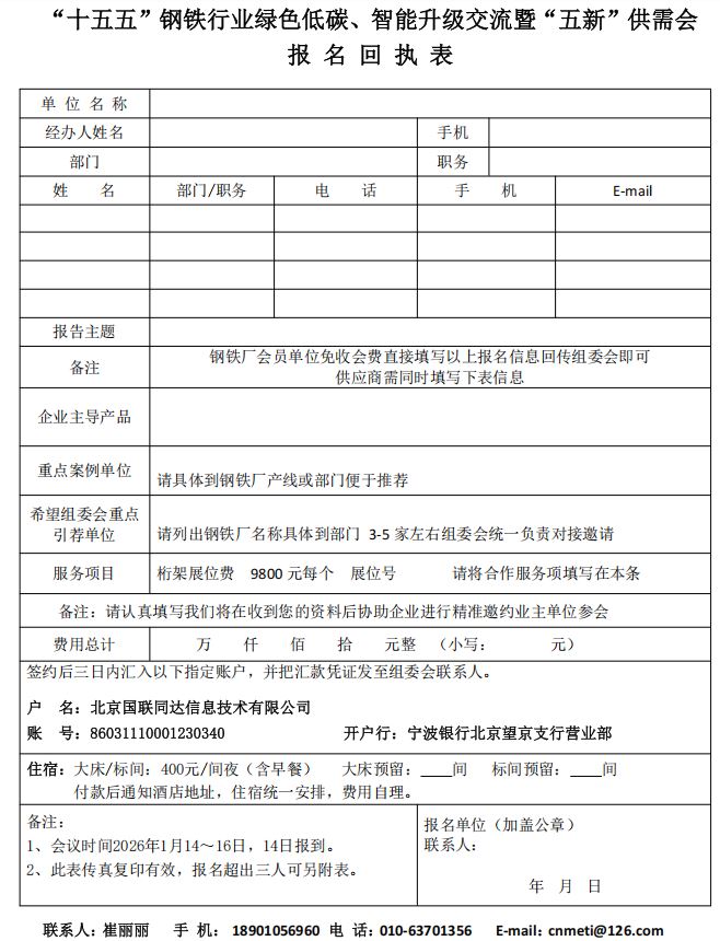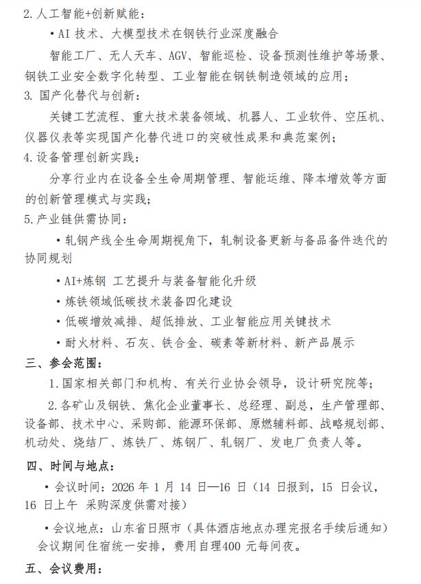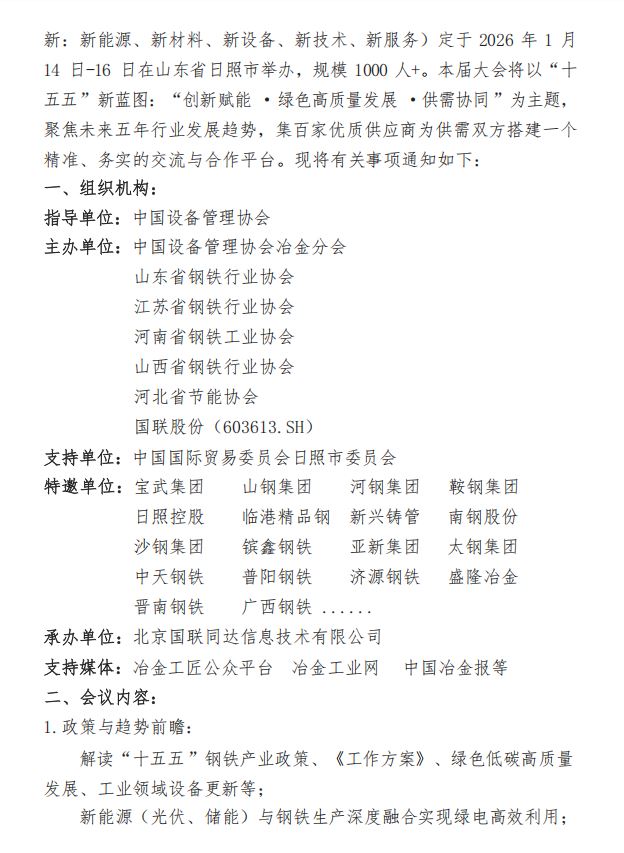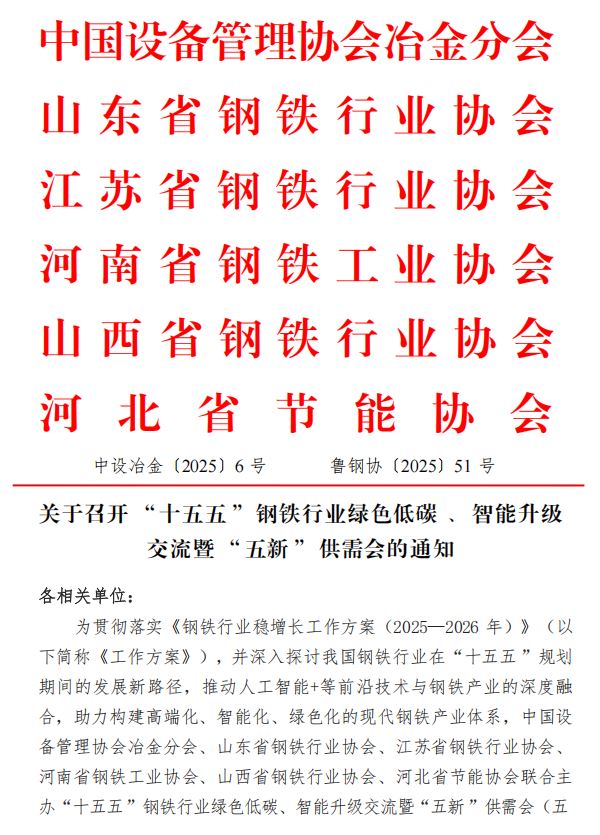 关于召开 “ 十五五 ” 钢铁行业绿色低碳 、 智能升级 交流暨 “ 五新 ” 供需会的通知