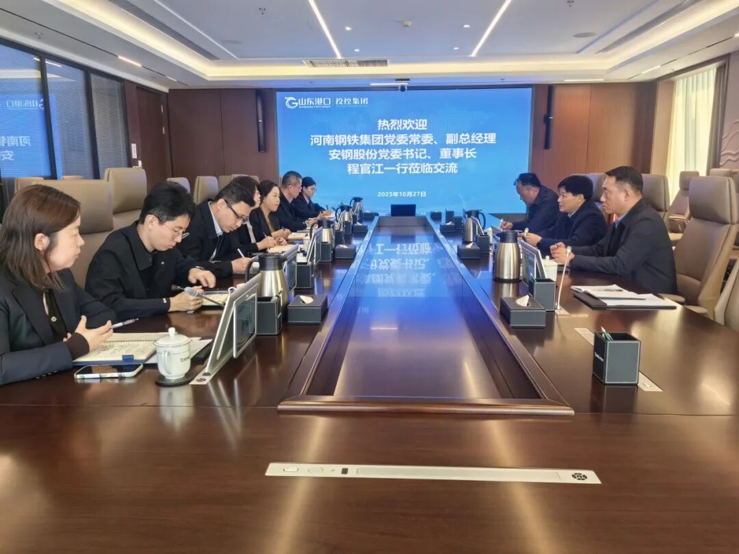 10月27日至29日,河南钢铁集团党委常委、副总经理,安钢股份公司党委书记、董事长程官江带队赴山东港口投控集团、青岛港集团、日照港集团走访交流,围绕供应链协同、合作模式创新、资源优势互补等核心主题与各方深入座谈,共绘合作发展蓝图。山东港口集团党委委员、总经理助理、山东港口投控集团党委书记、董事长姜春凤,青岛港集团党委副书记、总经理李武成,日照港集团党委书记、董事长张江南先后参加座谈。