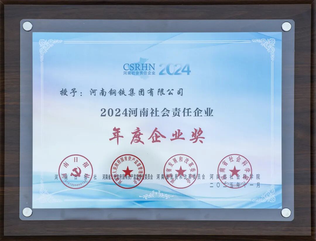 河南钢铁集团荣获“2024河南社会责任企业” 年度企业奖