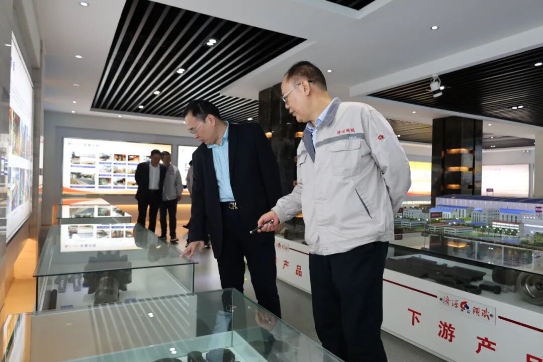 在济源钢铁(集团)有限公司展厅,杜轶峰一行详细了解发展历程、生产工艺、设备运行及产能效益等情况。在随后召开的座谈会上,双方就各自业务工作进行学习交流,并围绕原料供应、生产技术优化、未来发展趋势等核心议题展开深入交流。