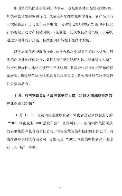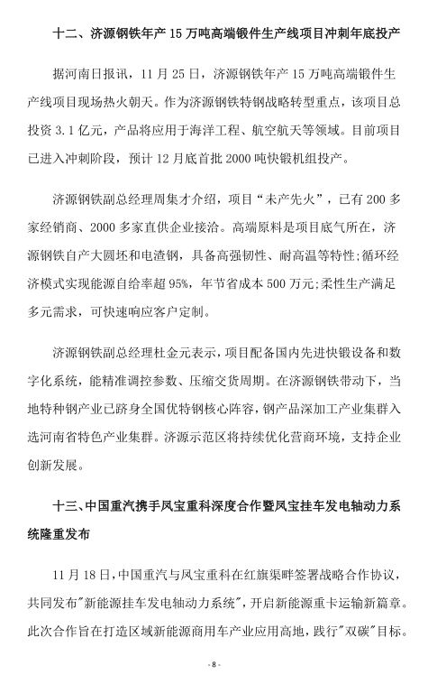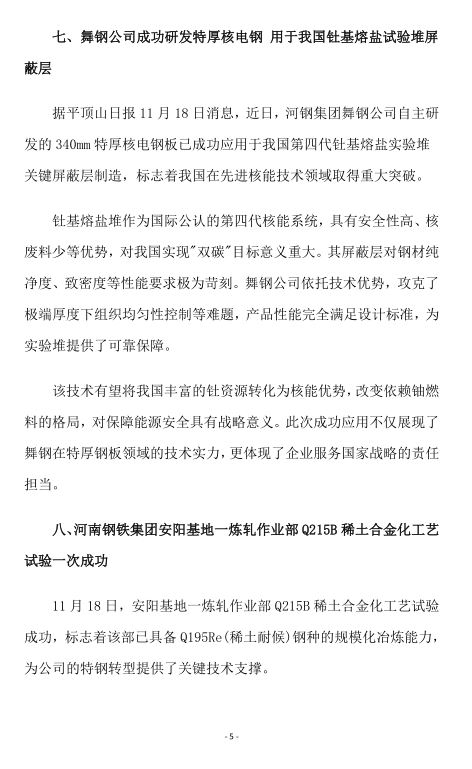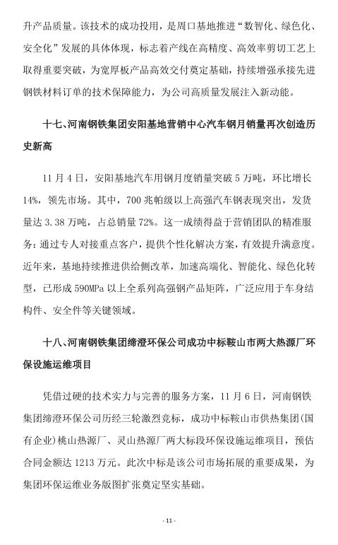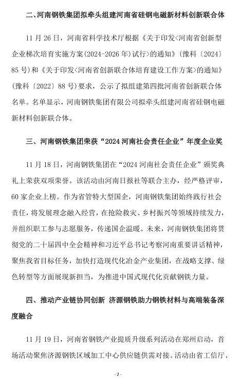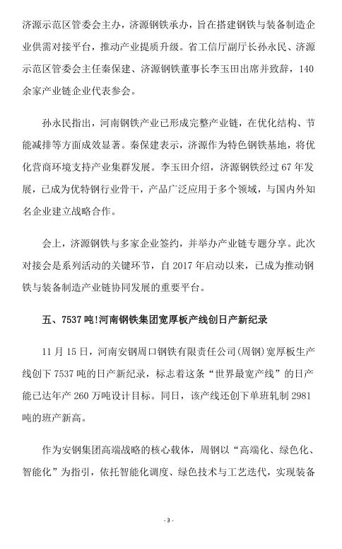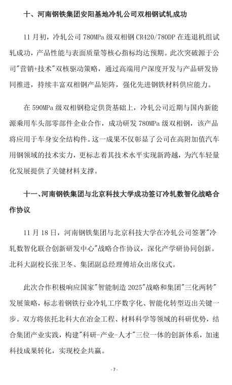 2025年11月河南省钢铁行业重要信息速览
