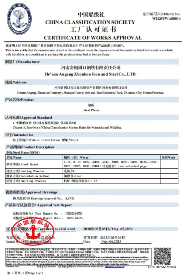 近日,周口基地宽厚板产品成功获得中、韩、法等多国船级社认证。这标志着该基地技术实力与产品质量已达到国际高端船舶制造领域的准入标准,也为集团开拓海外高端市场提供了关键资质。